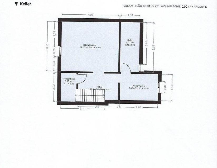 - Voll unterkellert (trockene Räume mit viel Stauraum)