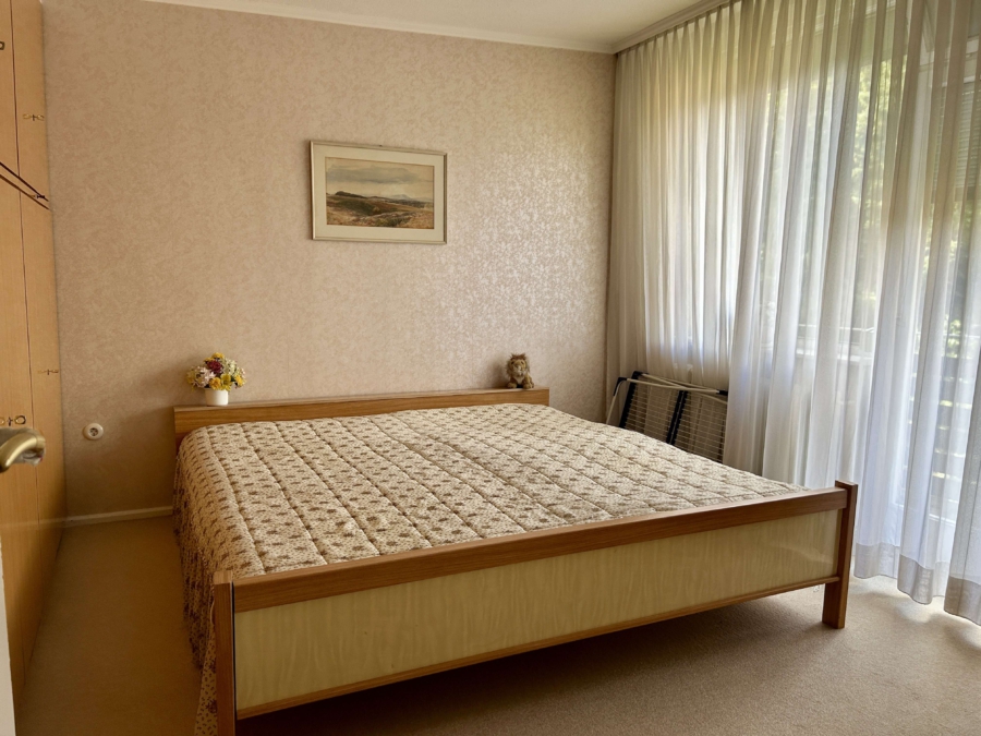 Von dem Schlafzimmer aus haben Sie zudem Zugang zu einem Balkon mit Blick in die grüne Umgebung.