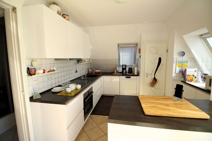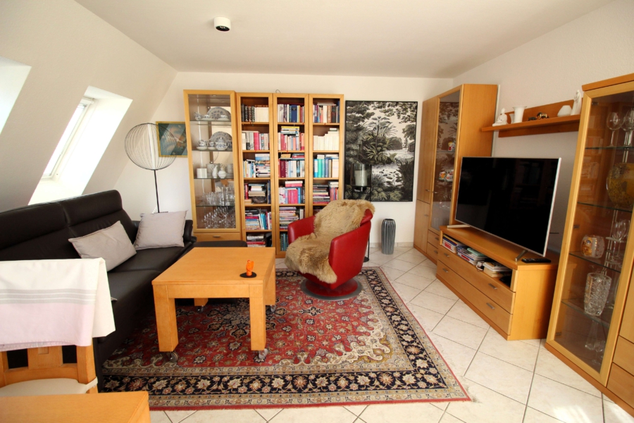 Das Herzstück bildet der großzügige Wohnbereich, der durch seine Helligkeit und den gelungenen Grundriss ein angenehmes Wohnambiente schafft. Die Wohnung wirkt durch die Dachschrägen besonders gemütlich und gleichzeitig offen.